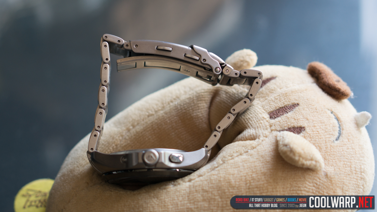 일단 가볍다. 39mm 크기와 슈퍼 티타늄의 앙상블을 통해 100g 이라는 경량이 주는 가벼움은 상상이상이다. 메탈 밴드를 채용한 제품이 손목위에서 이렇게 가볍게 느껴지다니 티타늄 시계를 처음 접한다면 깜짝 놀랄것이다. 참고로 실측시 조금 더 가볍게 측정된다. 티타늄 밴드를 다른 가벼운 가죽 밴드 등으로 교체한다면 훨씬 더 가벼워질것이다.