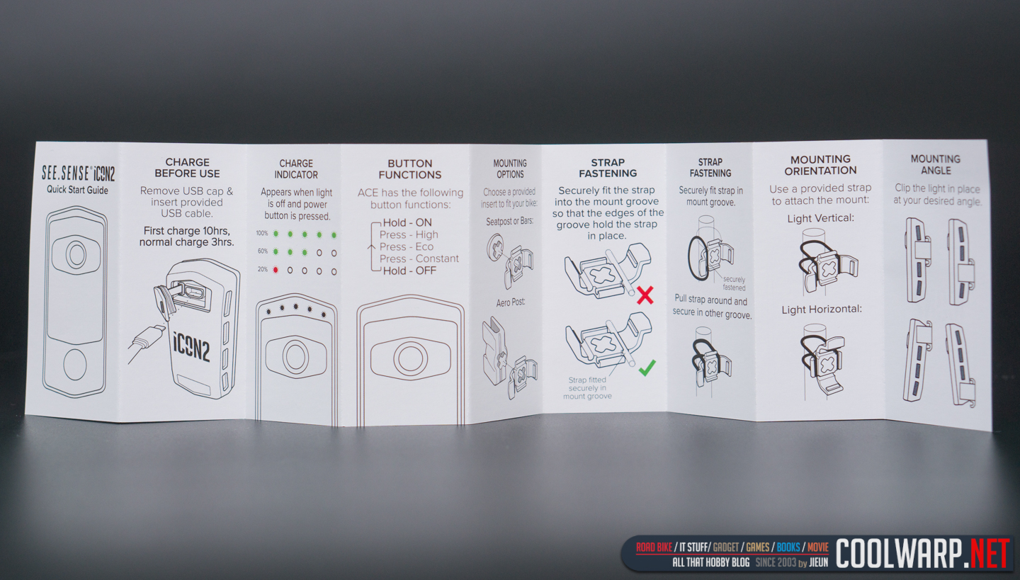 더 밝게, 더 오래 라는 문구가 눈에 띈다. 간단하게 보이는 이 조건을 만족하는 완성도 높은 후미등이 시장에 몇 종류가 있던가. 뒷면에는 기존 아이콘 유저들에게 익숙한 설명 아이콘들이 자리 잡고 있다. ICON1에서 이미 스마트 후미등이라는 기능적 요소들을 완성했던 만큼 다룰 수 있는 기능들은 비슷하다. 물론 정식 넘버링 후속작답게 성능 자체는 확실하게 향상되었다.