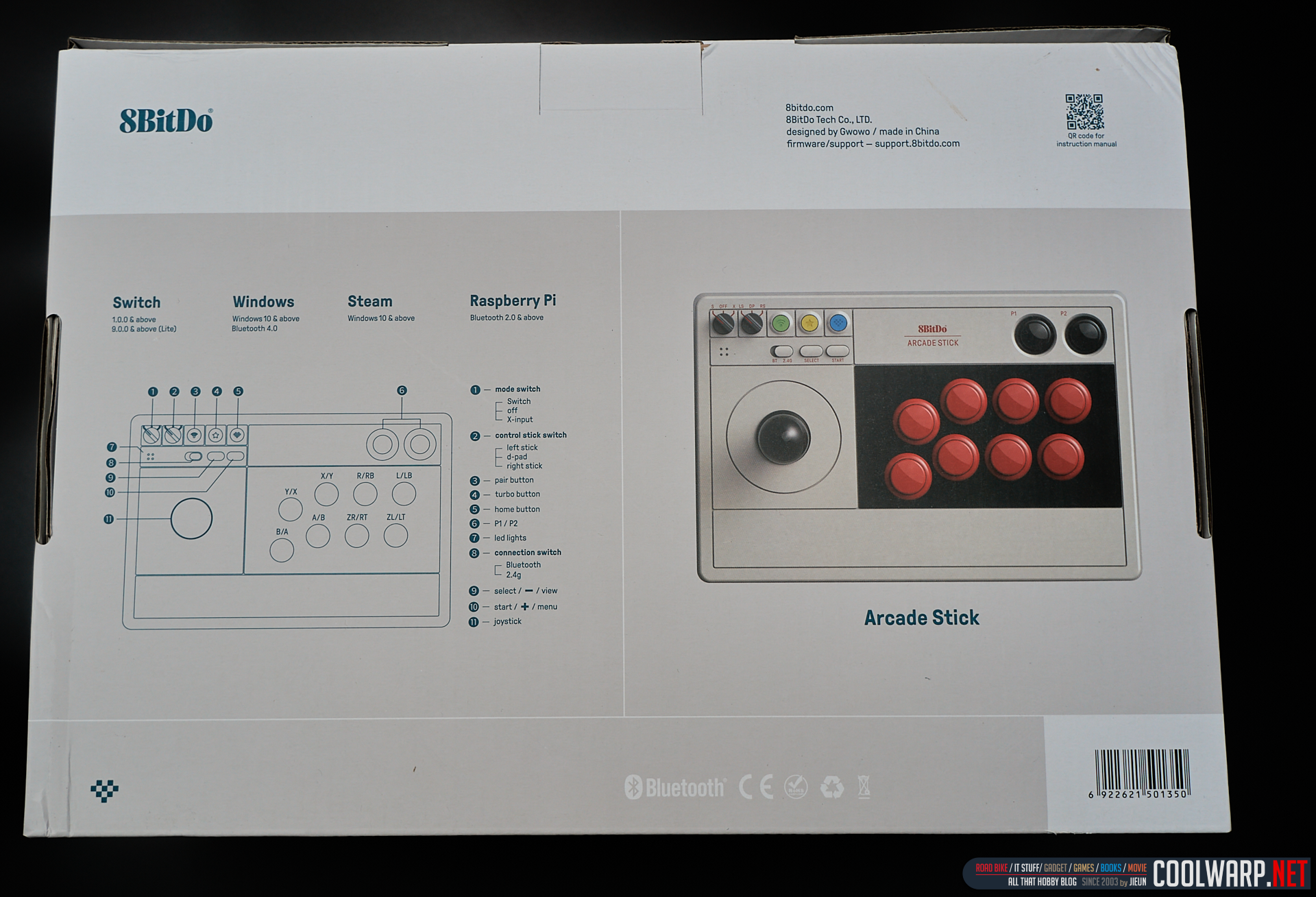 조그마한 크기에 아기자기한 디자인의 게이밍 패드로 최근들어 인기 몰이를 하고 있는 홍콩의 8bitdo에서 새로운 아케이드 스틱을 발매했다. 무려 닌텐도 스위치와 연결이 가능하고 PC와도 연결이 가능한 유무선 겸용 제품으로 정식 명칭은 8bitdo Arcade Stick인데 국내에서 무슨 이유에서인지 V3라는 명칭으로 함께 표기되어 있다. 홈페이지나 제품 박스 어디에도 V3라는 표기가 안보이는데 조금 궁금하긴하다.