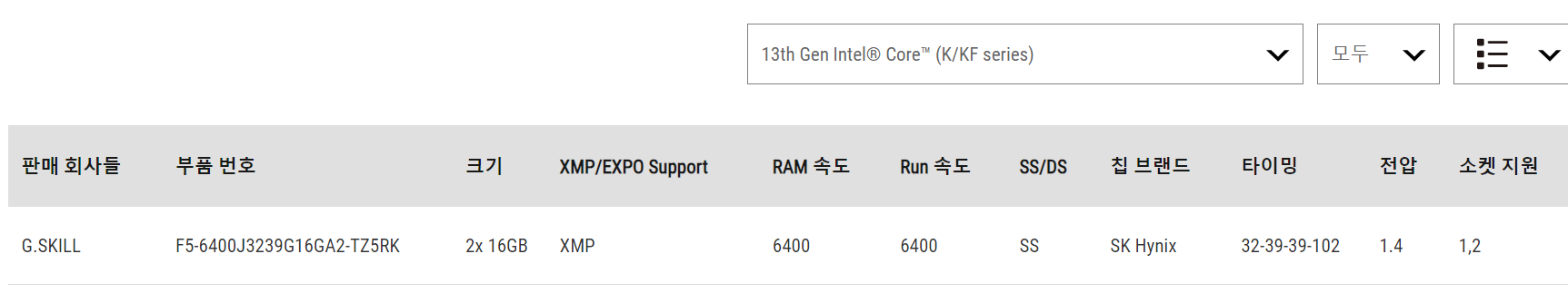 참고로 XMP 같은 오버클럭 설정을 확인하려면 해당 메인보드의 QVL 을 꼭 확인하시길 바란다. 아래 링크는 본인이 구매하려는 메인보드 - B760i의 QVL 링크이니 참조하시길. 덧붙여 CPU를 설정해야 제대로 검색된다.
