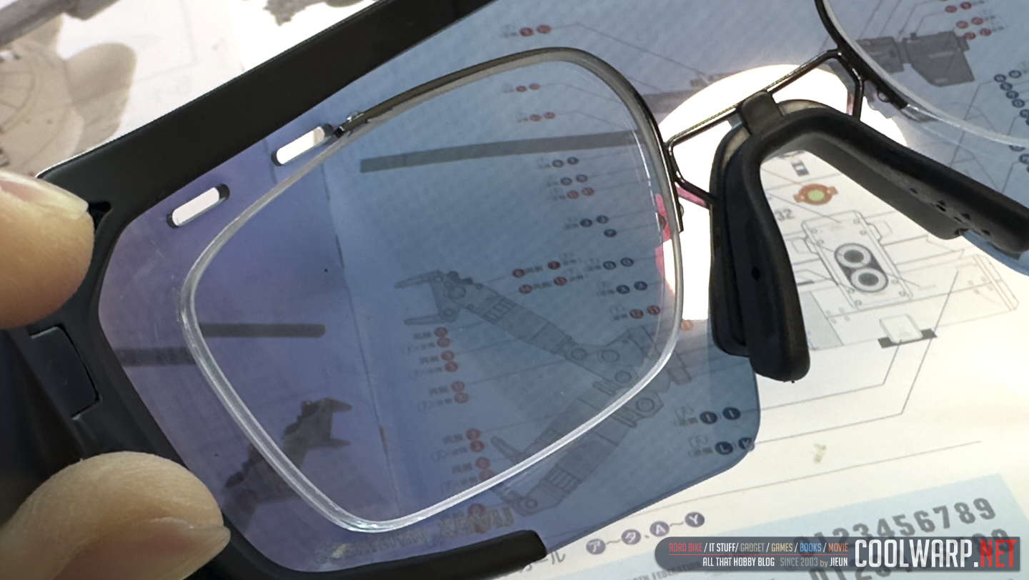 도수 클립은 코 받침에 끼우는 형태인데 생각보다 견고하게 연결된다. 그리고 끼우기가 꽤 어렵다. 원래 사용하던 우벡스 104는 플라스틱 프레임의 클립이라 보다 유연했는데 철제 프레임은 부러질까 봐 살짝 겁난다. 참고로 이 도수클립은 우벡스의 정품 클립이다.