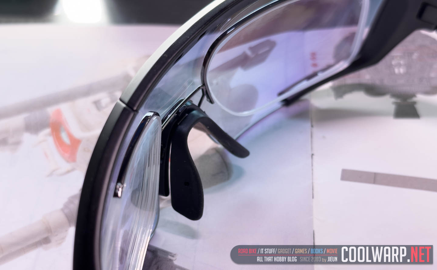 곡률은 이 정도. 도수 클립 사용 시 이 곡률 때문에 여러 문제가 생긴다. 본인은 이미 다양한 곡률에 적응한 눈이라 크게 상관없지만 처음 사용하는 라이더라면 분명 초반에 어지러움이나 불편함을 호소할 것이다. 대충 두어 달 고생해야 한다고 매번 말해주지만 그 기간을 견디는 사람이 있고, 못 견디는 사람이 있다. 이건 어쩔 수 없는 듯.