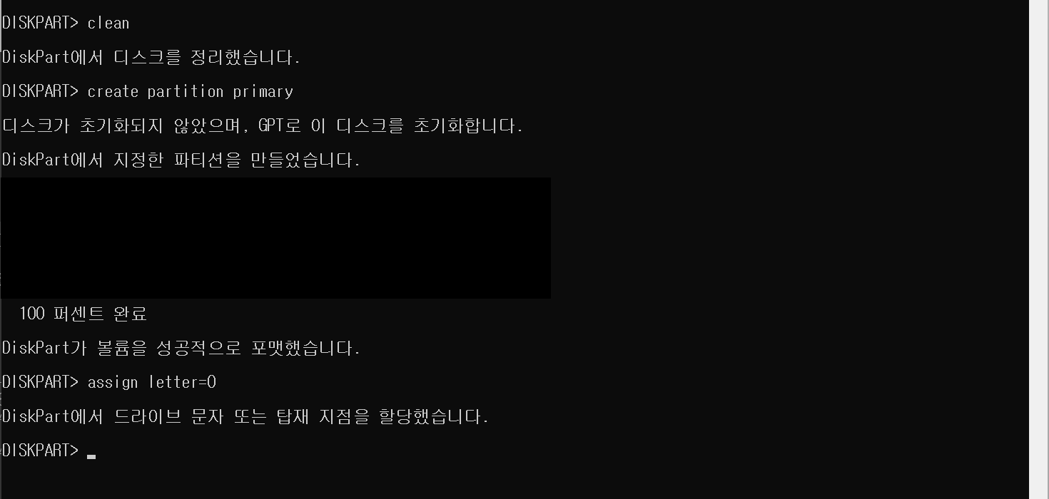 format fs=ntfs quick (스샷에 빠져있음)